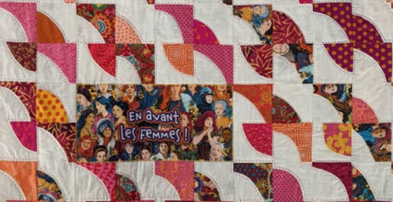 Ce quilt est inspiré d’un quilt de Bee Kristine, édité dans Les Nouvelles n° 133 (été 2017). Mais je crois bien ne pas me tromper si je dis qu’Yvette ne se serait pas lancée sans le stage qu’elle a suivi avec moi à l’automne dernier. Quelle réussite ! Un grand bravo tout particulièrement pour le quilting, bien dense et différent selon les zones du top.
