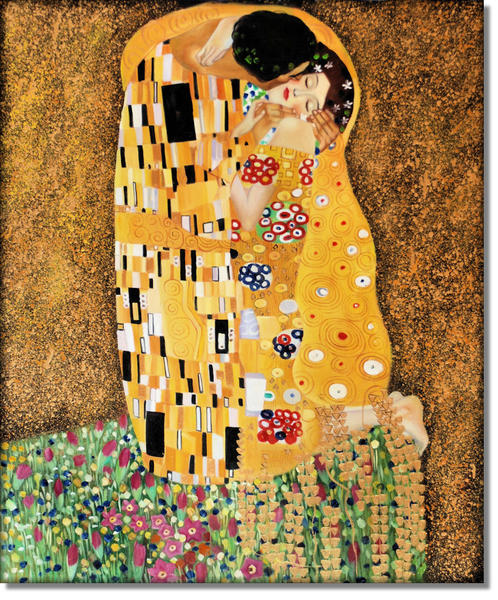 Le Baiser de Klimt (1908-1909), tant admiré, tant interprété… Il est visible au Grand Belvédère de Vienne. Certains spécialistes disent que Klimt s’est dessiné avec sa muse, Emilie Flöge.