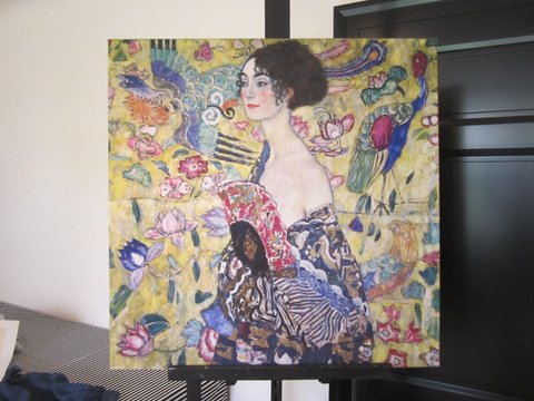 La repro d’un des derniers tableaux de Klimt se trouve dans son atelier : la Dame à l’éventail. J’ai longuement discuté avec le charmant monsieur de la Villa, spécialiste passionné du peintre, au sujet de cette réussite absolue… C’est un tableau rarement exposé au public, car il fait partie d’une collection particulière… Il y a des chanceux !!