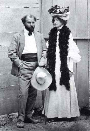 Les amis Emilie et Gustav, elle en robe de style « sécession viennoise », mouvement artistique apparenté à l’art nouveau français, lui en robe de lin indigo. Après la mort de Klimt, elle continua son ascension de créatrice. Sa société fut dissoute à cause de l’Anschluss (annexion de l’Autriche par l’Allemagne nazie) en raison de la perte de ses principaux clients et, à la fin de la guerre, toutes ses possessions, dont de nombreux souvenirs de Klimt, partirent en feu.
