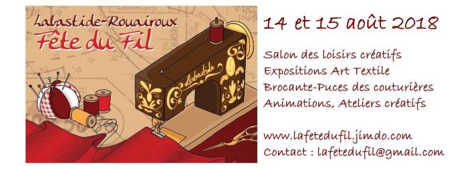 Je suis allée bien souvent, le 15 août, à sa Fête du Fil ! C’est LA sortie textile dans la torpeur estivale, quand déjà on voit poindre la rentrée… Je regrette encore une tapisserie des Tentmakers que j’ai eu la sagesse de ne pas acheter… Quelle idée d’écouter cette fichue sagesse, j’aurais dû être moins raisonnable !Comme les deux autres manifestations, à Pexiora et à Lacaze, c’est la bonne ambiance occitane qui prévaut. On se balade tranquillement du parc à la salle des sports en passant par le magnifique Musée Départemental du Textile, on mange à la bonne franquette… et on ne voit pas le temps passer !