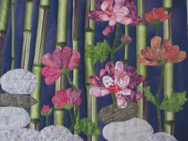 Ses quilts sont gais, originaux, souvent avec une pointe d’exotisme asiatique et assez sophistiqués techniquement. Mais Michelle est généreuse, ses ouvrages sont souvent expliqués dans la partie Modèles des Nouvelles (magazine de France Patchwork).