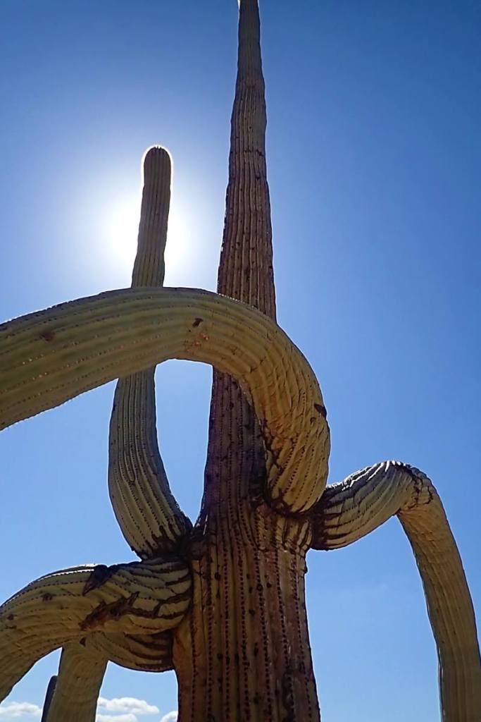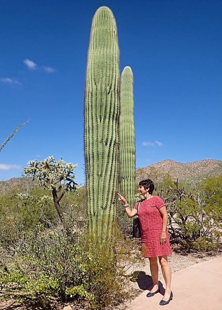 A vrai dire, en me promenant parmi les saguaros, une étrange sensation m’a saisie, comme si je me trouvais parmi une foule de personnes. Pourtant alentour, seul mon mari était visible. Ces cactus ont une présence remarquable, au-delà de leur stature (jusqu’à 15 mètres). Ne craignant aucune honte, je leur attribuais une personnalité, un petit nom au passage, je leur parlais.