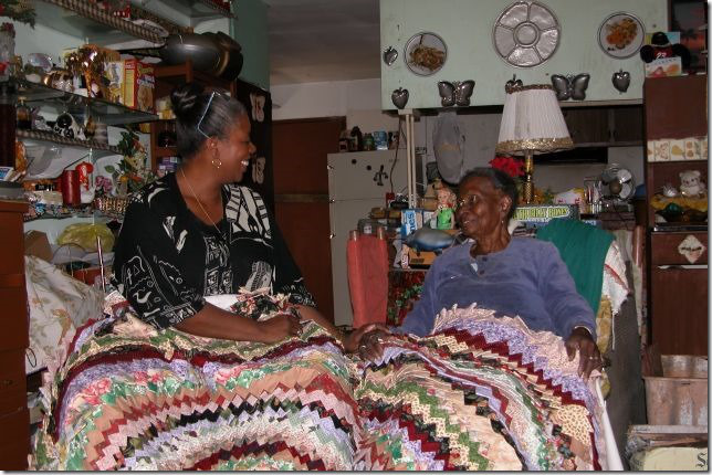 Parmi les visiteurs, les amies de Betty, quilteuses de Gee’s Bend. Ici la mère et la fille, Ronnie et Laura, posant fièrement devant LE quilt.