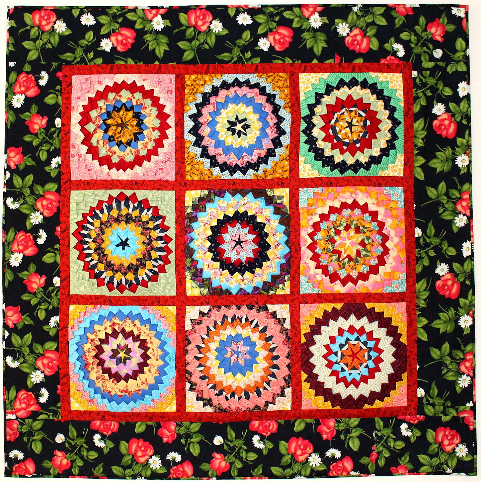 Vous pouvez lui rendre virtuellement visite ici : Nifty Quilts. Personnellement, j’adore sa démarche, je me nourris de ses quilts et de ses orientations, même si mes ouvrages ne sont pas souvent dans la même gamme de couleurs qu’elle ! J’admire d’autant plus que je ne sais pas utiliser ces gammes de couleurs vibrantes…