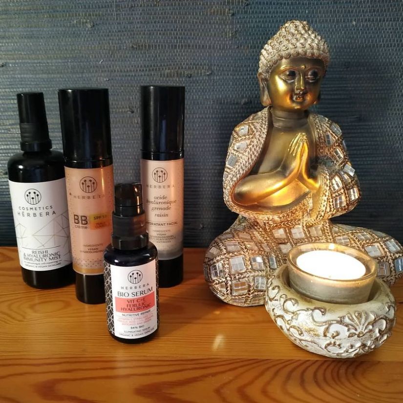 Pour nos soins cosmétiques, je préconise encore la logique millénaire : n’utilise sur ta peau que ce que tu peux manger… ou presque. On mange tellement n’importe quoi parfois que ce n’est même plus un critère !! Mais c’est dans cette mouvance que ma sœur a créé une petite boutique de produits utilisant les bienfaits de la nature, Passionaturel. Si je n’étais pas ravie de ses choix, je n’en parlerais pas ! Concrètement je prends soin de moi avec de l’huile (oui, cela pourrait même être l’huile d’olive et de sésame de la cuisine, mais je garde un minimum de glamour avec les huiles proposées par le site !), un savon basique naturel (de Marseille, d’Alep, ayurvédique...), de l’eau de rose, de l’aloe vera (hydratant puis, quand il sèche, tenseur pour une peau lisse toute la journée) et mon indispensable dentifrice ayurdédique gourmand. De nombreux autres soins vous sont proposés, vous pouvez contacter Véro pour des conseils personnalisés.