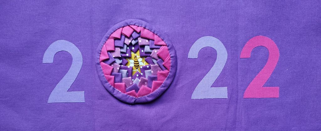 Que retenir de 2021 ? Assurément des constellations de belles étoiles ont facilité les expositions de La Ruche à Lacaze, du collectif Quilts Météo au Carrefour Européen du Patchwork et une sélection des deux au Salon des Tendances Créatives de Toulouse. De bien Belles Étoiles ont aussi brillé au stage d’Arcachon et à la JA FP16 à Ligné, enfin les Abeilles de la Ruche et tant d’amies quilteuses illuminent ma vie… Pour le reste, les dissonances de la vie n’épargnent personne, chacun le sait. Ce sont les circonstances pour apprécier ce que nous avons, et continuer son chemin⭐.