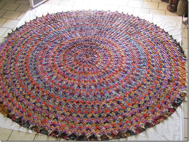 J’avais commencé, une semaine avant le Florida Folk Festival fin mai, un Pine cone quilt qui n’a connu qu’une seule interruption, les 9 jours de notre voyage en France.