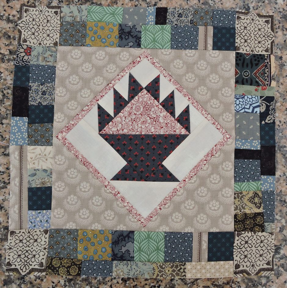 Je l’ai soumis à quelques amies avant de l’accepter tel qu’il est. Elles m’ont dit de le garder, et je leur fais confiance. Et puis Gwen Marston aussi fait parfois des centres très traditionnels, pour ensuite exprimer sa liberté dans les bordures… et c’est bien ce que faisaient beaucoup de quilteuses de jadis, donc je vais conserver mon petit panier d’inspiration galloise, puis le faire grandir au fil de l’été grâce à ce groupe si sympathique :