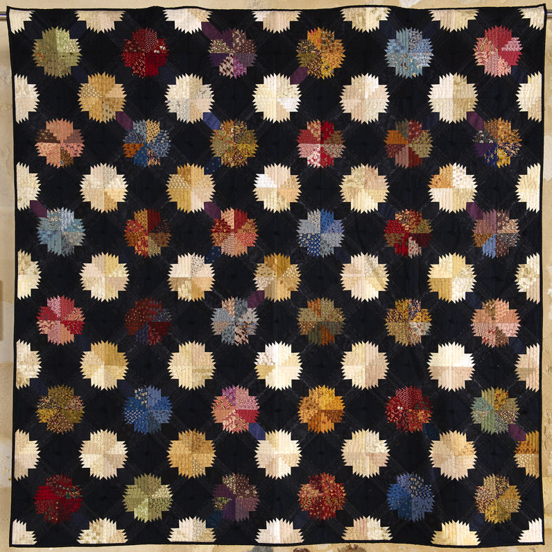 C’est pour moi un plaisir renouvelé d’admirer ces quilts, pour d’autres c’était une belle découverte. Ces superbes ouvrages sont magnifiés par l’éclat des tissus récemment teints, la perfection de réalisation de nos meilleures quilteuses traditionnelles françaises, le plaisir esthétique intemporel des motifs géométriques symétriques… Ils nous font faire un troublant voyage dans le passé… Les visiteurs restent ébahis devant tant de minutie et de beauté.