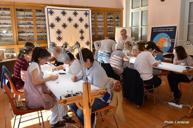 Alors il me semble qu’on peut continuer à employer les mots en anglais puisque cet art a été largement développé aux Etats-Unis et c’est là que les choses ont été nommées : les noms des blocs, les outils, les techniques… On traduit ce qui l’est facilement (bloc pour block) et on peut garder les mots et expressions spécifiques (patchwork, log cabin, cutter et autres…). A chaque domaine sa langue dédiée ! Savez-vous quelle est la langue internationale pour la Poste Universelle ? C’est le français, auquel a été ajouté l’anglais seulement en 1994. Je l’ai appris lorsque ma cousine habitant en Suède m’envoya un « envoi recommandé » (écrit en français, tout comme la mention « par avion ») lorsque j’habitais en Allemagne. De même, en danse classique ou en escrime par exemple, les termes techniques sont en français dans le monde entier.