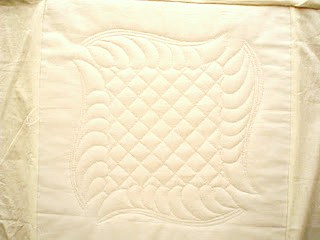 Avec le recul d’un siècle d’utilisation et d’usure, on se rend compte que les quilts matelassés ainsi restent plus longtemps intacts !! Les quiltings serrés qui ne tiennent pas compte des dessins du top sont les plus efficaces pour préserver les fibres de tissu du déchirement. Autres exemples de quiltings traditionnels conservant longtemps les quilts : les clamshells (motif des coquilles) et les croisillons serrés.
