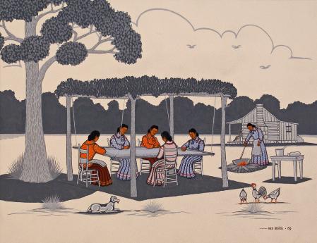 Quilting Bee – Fred Weaver (gouache, 1969)