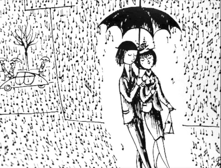 Un p’tit coin de parapluie, contre un coin de paradis… Illustration Raymond Peynet.