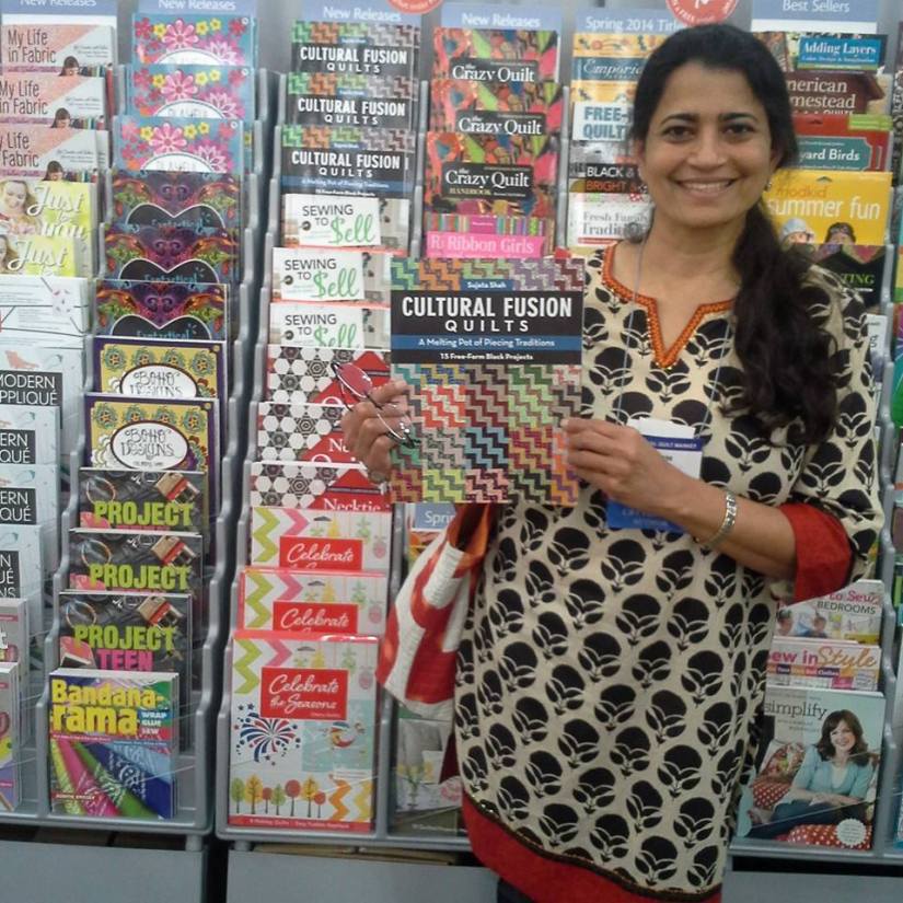 Sujata Shah, une chère amie quilteuse vivant désormais en Californie, a publié en 2014 un livre devenu un best-seller, Cultural Fusion Quilts. Il marque une étape importante dans la compréhension des quilts créés avec des techniques de coupe amusantes, générant un résultat toujours unique. Son art est hérité de Gwen Marston, notre grande inspiratrice, qui ouvrit bien grand la porte de l’improvisation. A chaque fois que je feuillette son livre, j’y trouve de nouvelles idées ! Ce que j’y aime aussi, c’est son attachement aux artisanats du monde, sources inépuisables d’émerveillement.