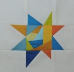 Les étoiles sont parmi les motifs les plus appréciés en patchwork. Dans BeeBook, je ne me suis pas privée d’en proposer, des étoiles pas forcément régulières, les wonky américaines, que j’ai préféré nommer étoiles créatives. À présent, le quilt qui est actuellement en bannière du blog est dans ma pièce à vivre et, malgré certaines réticences entendues sur les couleurs bizarres, il s’intègre parfaitement à mon intérieur ! Il est un hommage à Sujata Shah, si talentueuse et généreuse, dont je ne me lasse pas de promouvoir son livre (sa présentation ici), avec la contribution d’une brodeuse indienne via Neelam chez qui j’ai choisi la broderie centrale :