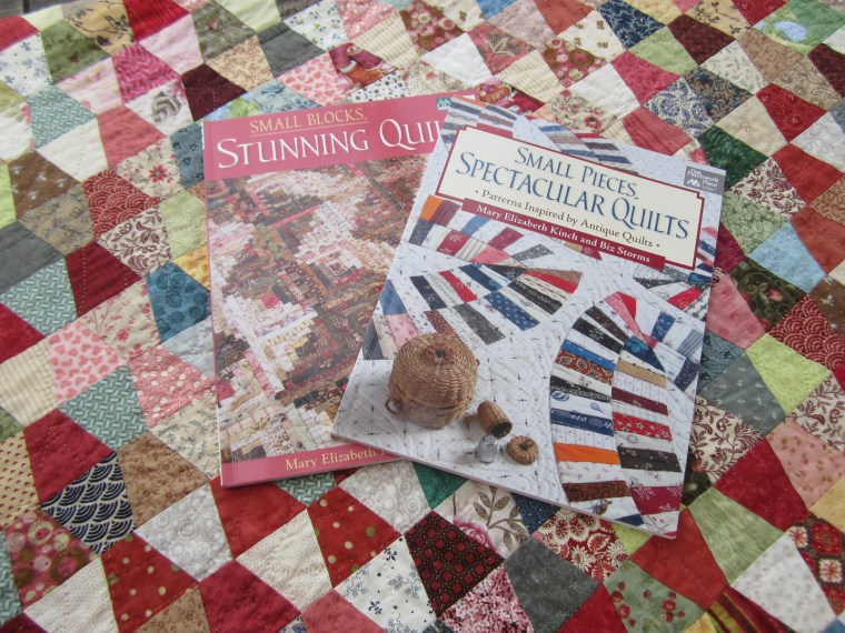 Vous connaissez déjà mon admiration pour Bonnie Hunter qui, à partir de tissus de toutes sortes (et souvent des moches !), réussit à faire de magnifiques scrapquilts. Aujourd’hui, laissez-moi vous présenter deux femmes à la passion commune : faire d’immenses quilts (leurs bébés!), inspirés d’antiquités ayant un point commun : de tout petits gabarits ! Ces deux quilteuses, Mary Elizabeth Kinch & Biz Storms, ont édité deux livres formidables :