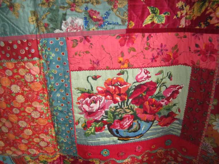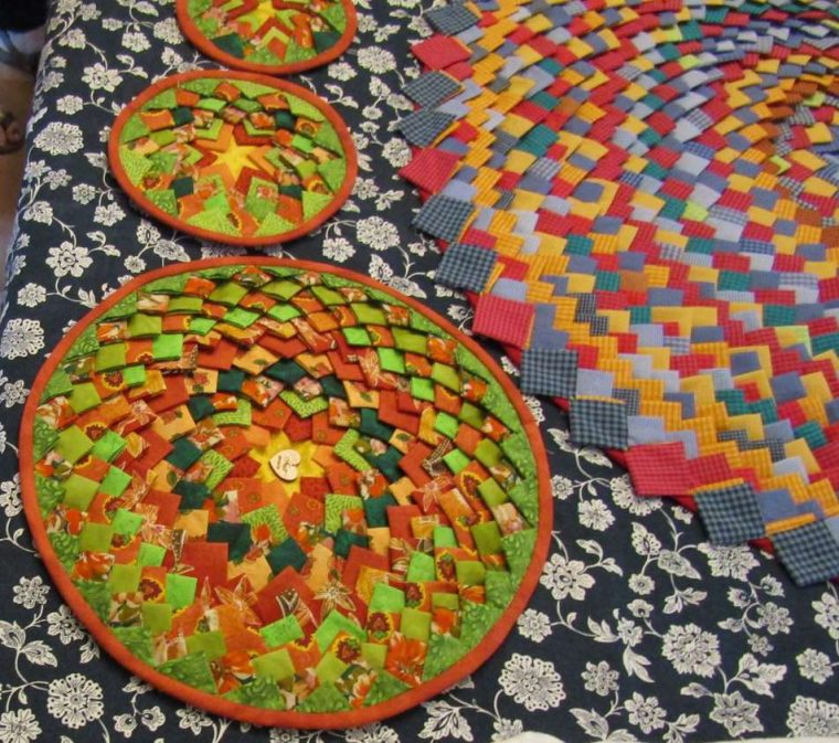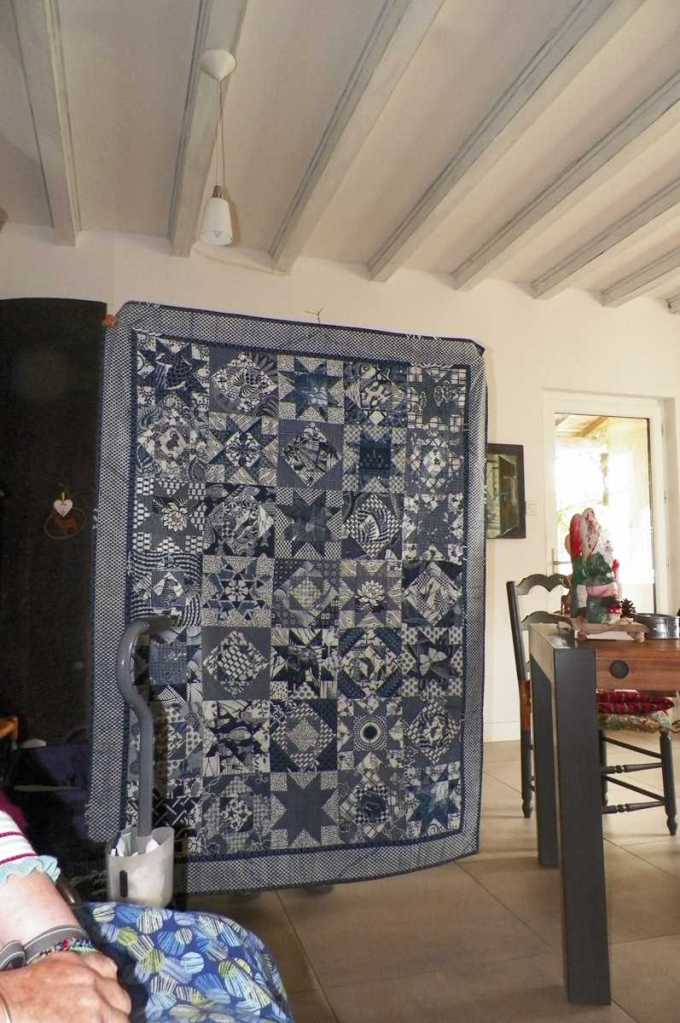 Il est presque impossible de croire que deux femmes qui se sont rencontrées sur Internet à cause du patchwork ont développé une amitié sincère autour d’un Pine Cone Quilt et d’une femme de 92 ans (Miss Sue). La langue n’a jamais été un problème parce qu’à la maison je pouvais toujours appuyer sur le bouton traduire. La langue n’était pas un problème sur place non plus, parce que tout le monde a essayé de parler un peu anglais avec patience ou d’utiliser ses mains et ses yeux pour m’aider à comprendre. Je n’oublierai jamais les visages heureux, les larmes de joie et tous ces baisers et les beaux patchworks qui m’ont été montrés. Je n’arrive toujours pas à croire qu’aujourd’hui, 100 femmes dans le sud de la France connaissent le secret de la courtepointe Pine Cone que Miss Sue a partagé avec moi il y a 14 ans pour la première fois et qu’elles ont trouvé tant de façons inventives de le faire.