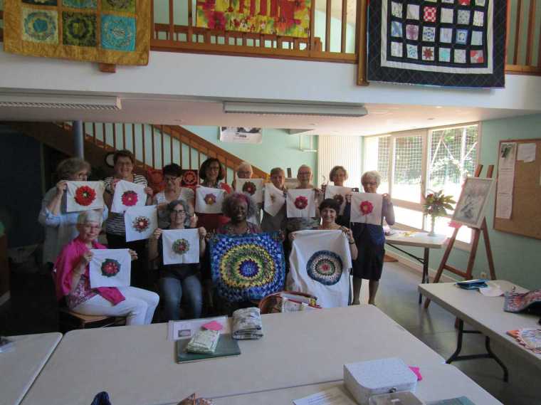 Avant de nous quitter, photo de groupe avec une pépinière de Pine Cone Quilts :