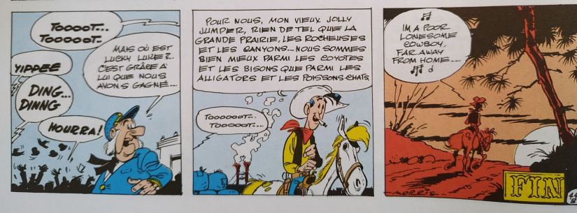 La Nouvelle-Orléans a encore conservé le souvenir de la France.En remontant le Mississipi, Lucky Luke nous fait découvrir les caprices et dangers de ce fleuve et plusieurs faits historiques. L’album est aussi vieux que moi, de janvier 1961, mais lui n’a pas pris une ride !